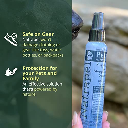 Natrapel Pets & People bug spray is made with a blend of essential oils to protect your pets from fleas, ticks and mosquitoes. This DEET-free insect repellent is a ready to use spray with a fresh scent made from thyme and lemongrass essential oils, and is safe for dogs, cats and the whole family.